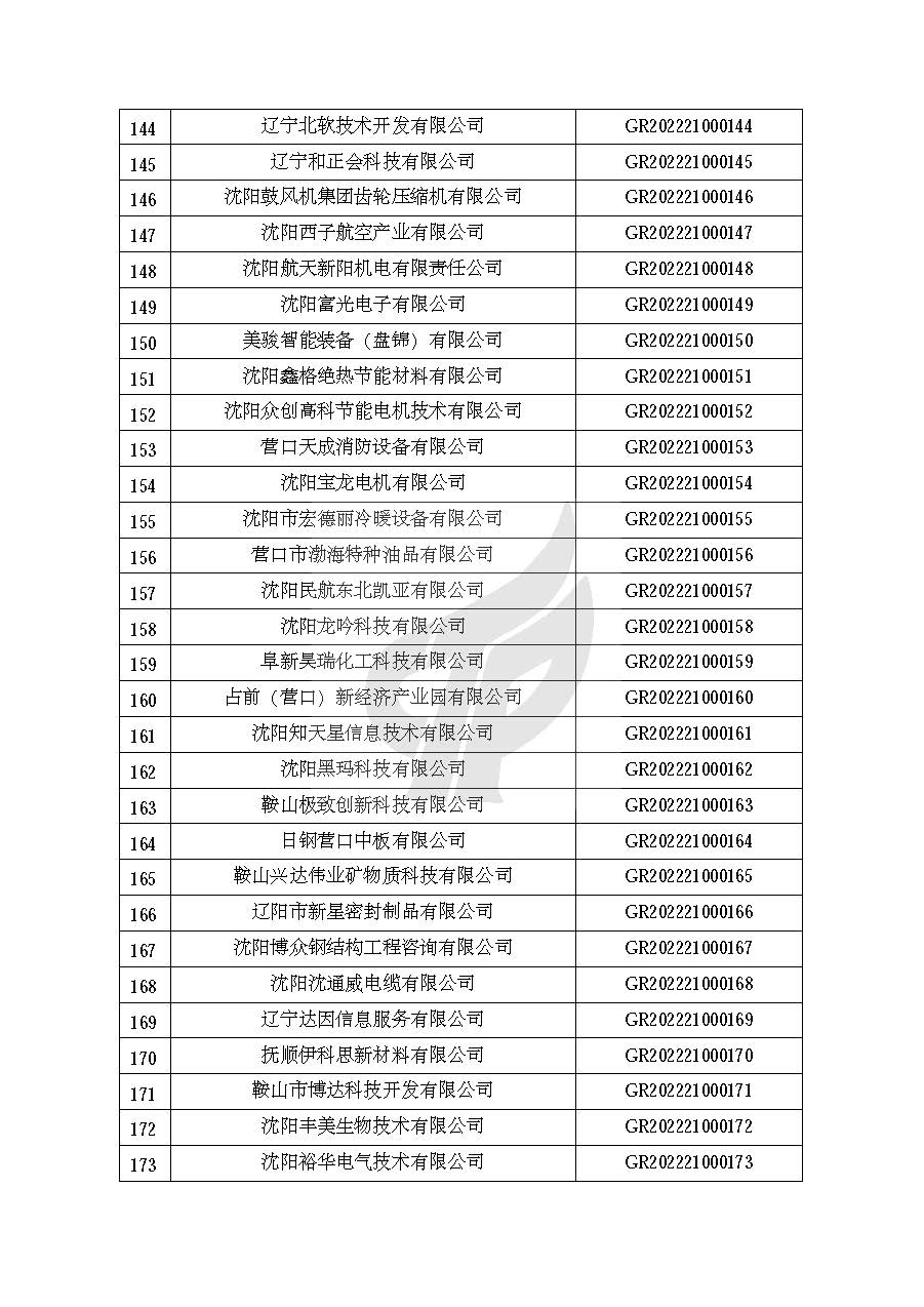 附件:辽宁省认定机构2022年认定的第一批高新技术企业备案名单