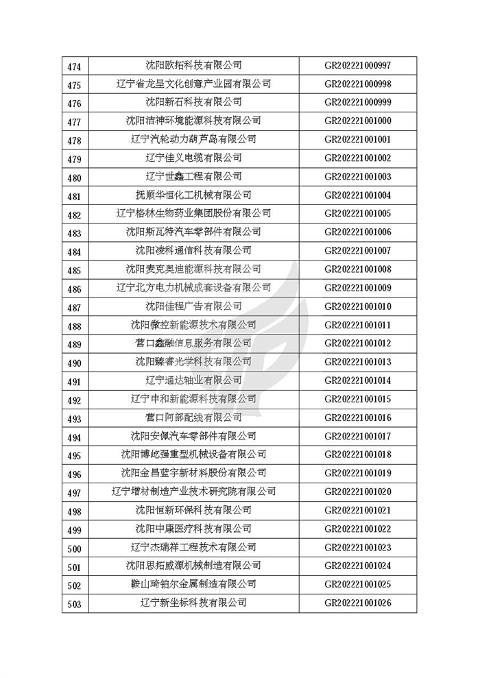 附件:辽宁省认定机构2022年认定的第二批高新技术企业备案名单