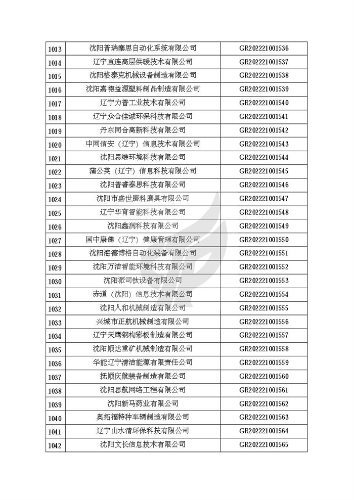 根据《高新技术企业认定管理办法》(国科发火〔2016〕32号)和《高新技术企业认定管理工作指引》(国科发火〔2016〕195号)有关规定,现对辽宁省认定机构2022年认定的第二批1142家高新技术企业备案名单(详见附件)予以公告。