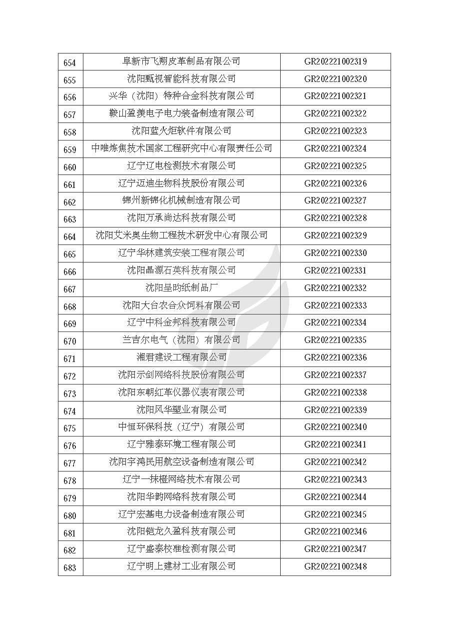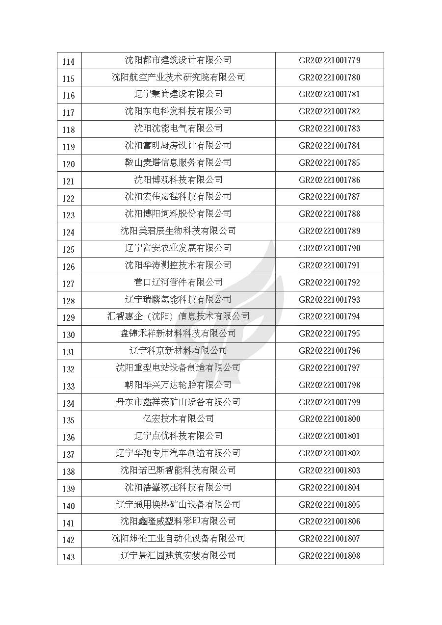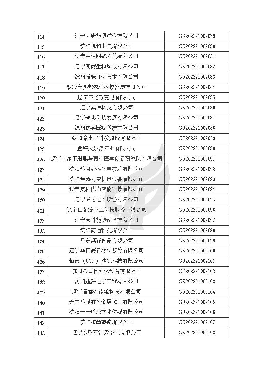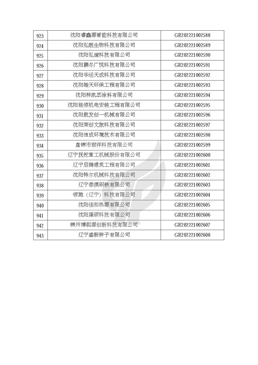 根据《高新技术企业认定管理办法》(国科发火〔2016〕32号)和《高新技术企业认定管理工作指引》(国科发火〔2016〕195号)有关规定,现对辽宁省认定机构2022年认定的第三批943家高新技术企业备案名单(详见附件)予以公告。