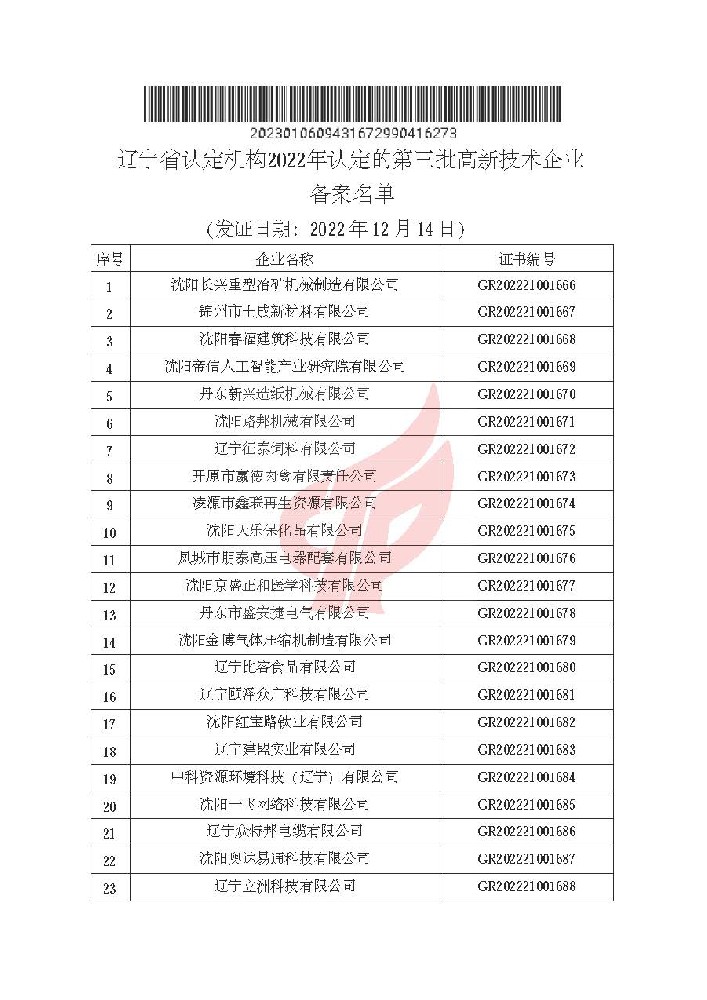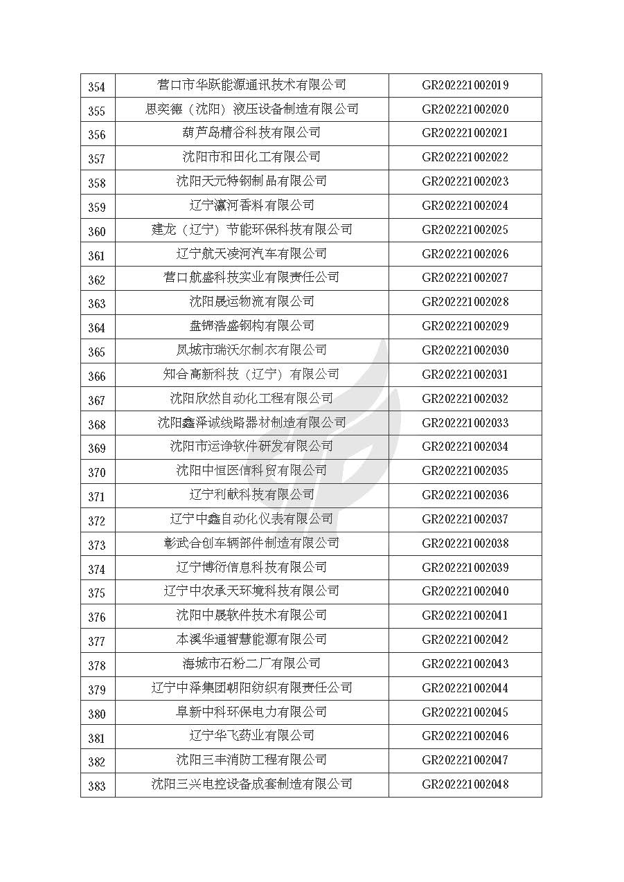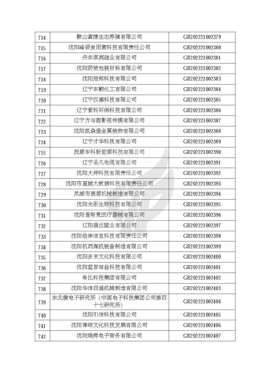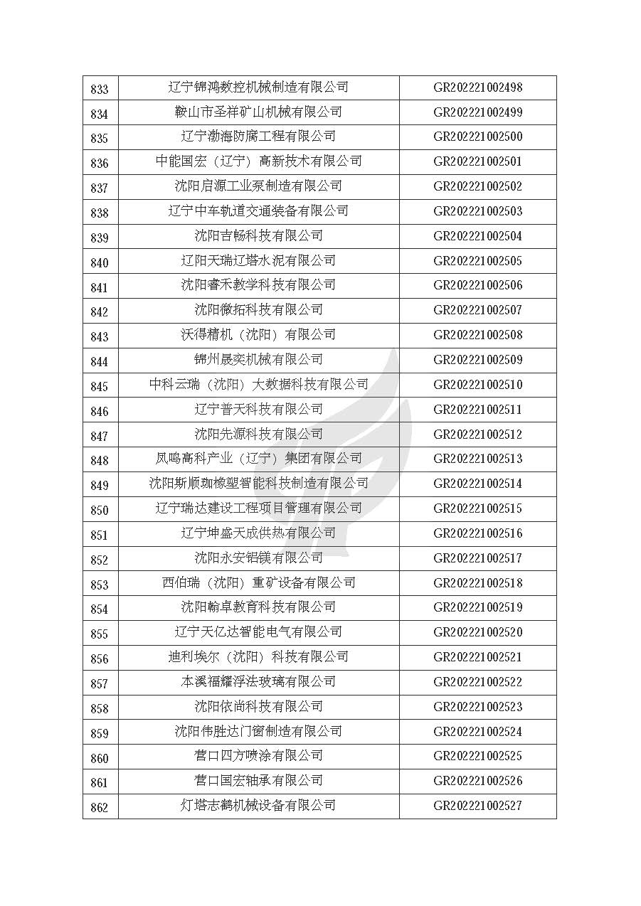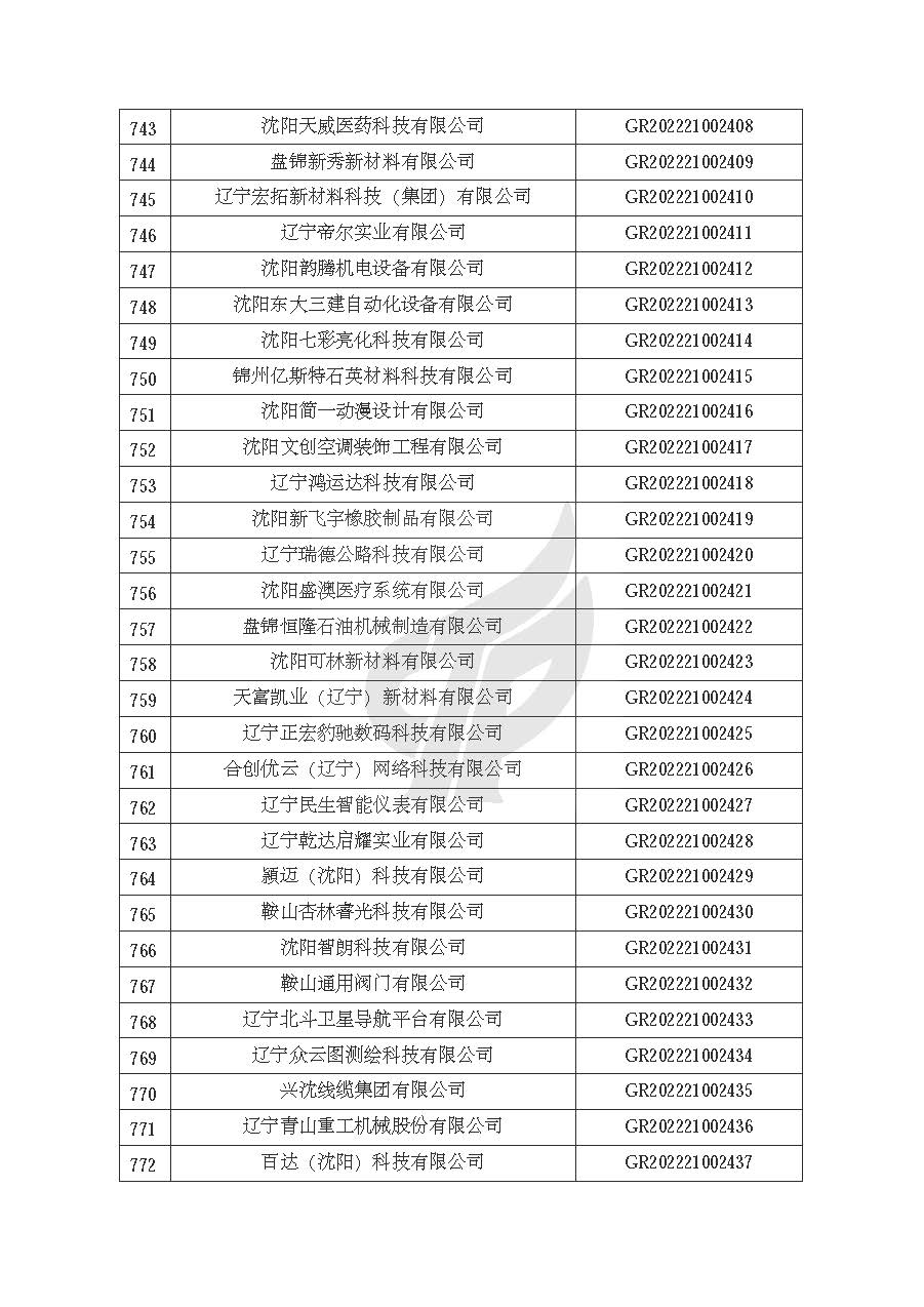根据《高新技术企业认定管理办法》(国科发火〔2016〕32号)和《高新技术企业认定管理工作指引》(国科发火〔2016〕195号)有关规定,现对辽宁省认定机构2022年认定的第三批943家高新技术企业备案名单(详见附件)予以公告。